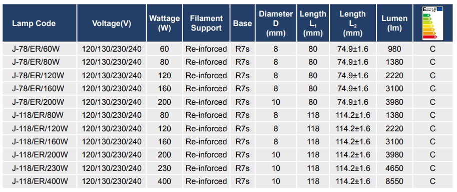 J-Type Halogen Energy Saver Lamps details